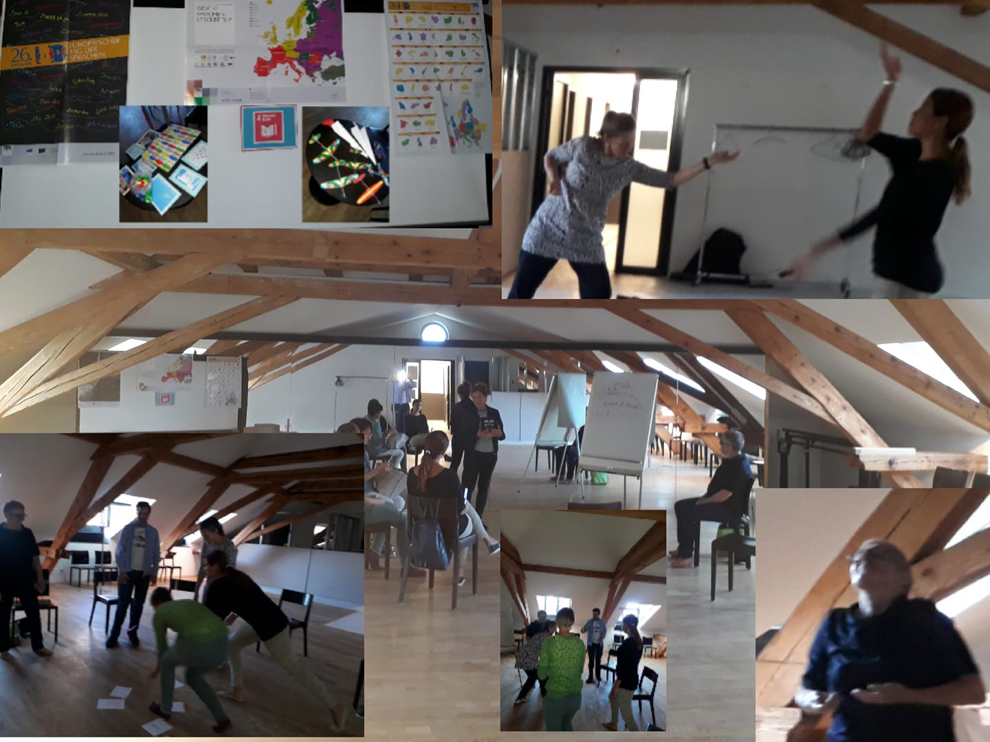 Such syllabys can be created using terms from any language. It is essential to pay attention to phonetic rhythm during pronunciation, so that articulation and sound give a clear impulse for body movement, trigger associative images and breathing indirectly guides the rhythm of the bodily movement.